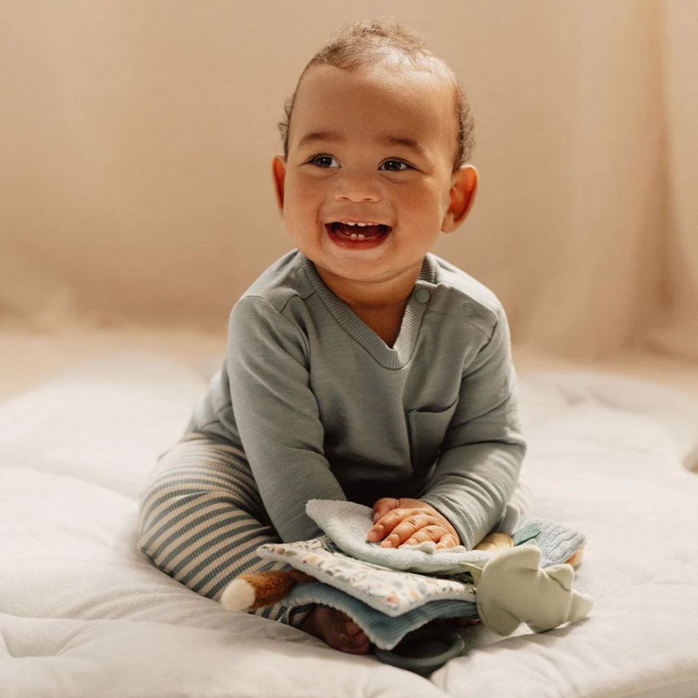 The Little Dutch Soft Activity Booklet Forest Friends invites your little one on a magical journey through the forest! This touch-and-feel book is filled with exciting activities, including a mirror, a rattle, and crinkly toys that stimulate your child’s senses. Perfect for tiny hands, it helps develop hand-eye coordination while providing hours of sensory exploration and fun with its adorable forest friends!