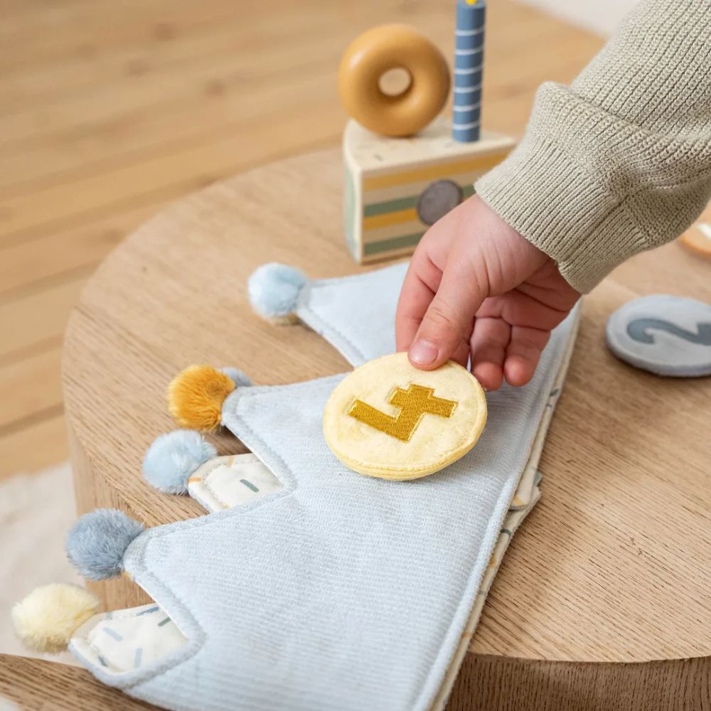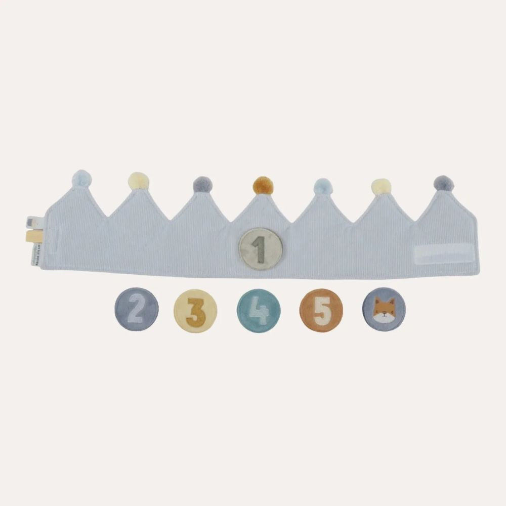 Make your little one’s birthday magical with the Little Dutch Birthday Crown! This adorable blue crown features soft ribbed velour fabric, playful pom-poms, and 6 interchangeable badges, including Velcro numbers from 1 to 5 and a sweet daisy. The Velcro closure ensures a perfect fit, while the charming design adds a touch of everyday magic to their special day.