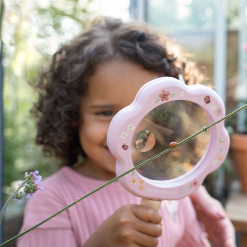 Inspire little adventurers with this enchanting wooden magnifying glass from Little Dutch, designed to turn nature walks into whimsical discoveries! Featuring charming Fairy Garden-themed illustrations, a sturdy wooden frame, and an ergonomic handle, it’s built for tiny hands to grip comfortably. The integrated extra-small lens lets kids zoom in on hidden detail, perfect for spotting insects, leaves, or fairy-sized secrets!