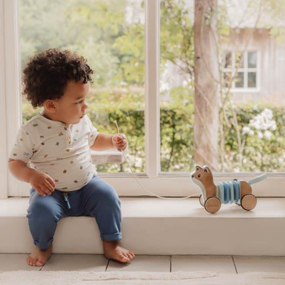 The Little Dutch Pull Along Wiggle Fox from the Forest Friends collection is a playful and engaging toy designed to support your toddler’s first steps. Made from smooth wood, this charming fox wiggles and moves as it's pulled along, making every walk a delightful adventure.