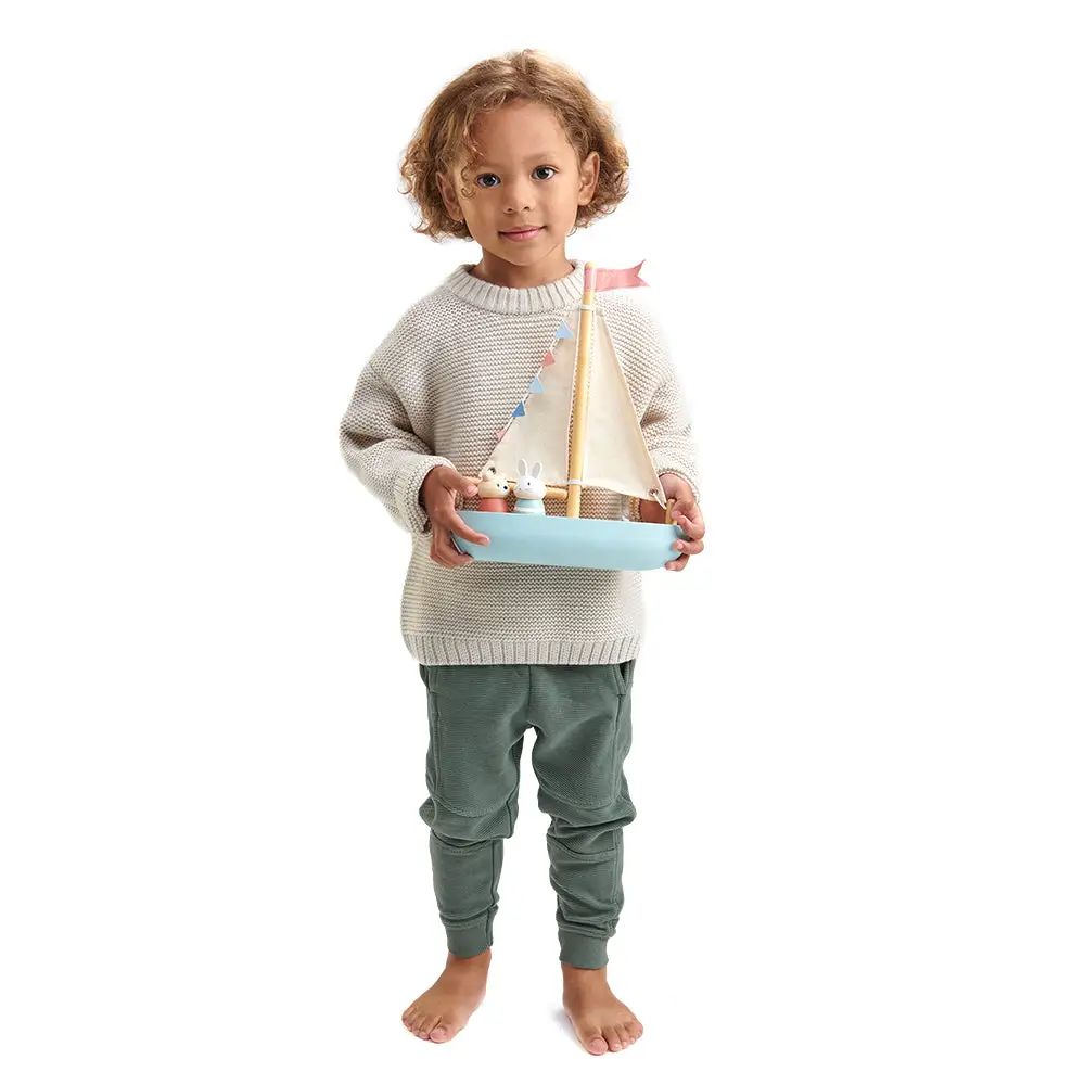 Join Bubble and Squeak on a sailing adventure. Whether it be on the high seas or simple messing around on the river on a sunny afternoon, there are endless ways to play with this stunning sailboat. The dolls are the same scale as the Timber Taxi and Secret Meadows Shepherds hut, so all the characters can join in with the fun! Brilliant for gross motor skills, imagination and communication play.
