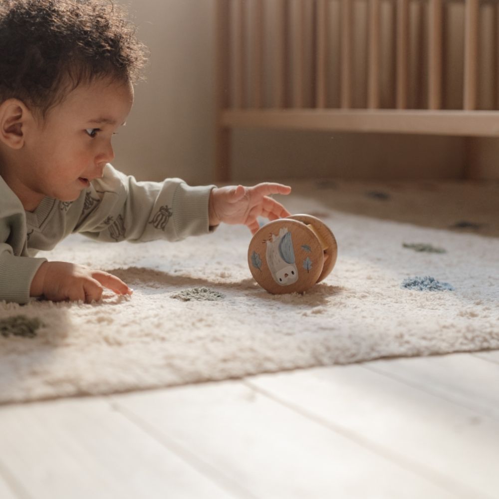The Little Dutch Wooden Gift Box – Forest Friends is a charming collection of baby’s first wooden toys, thoughtfully presented in a decorative storage box. Featuring gentle woodland tones and adorable forest animal illustrations, this set includes a rolling rattle, a stacking toy, and a push-along bug, all designed to support sensory development, motor skills, and early play.