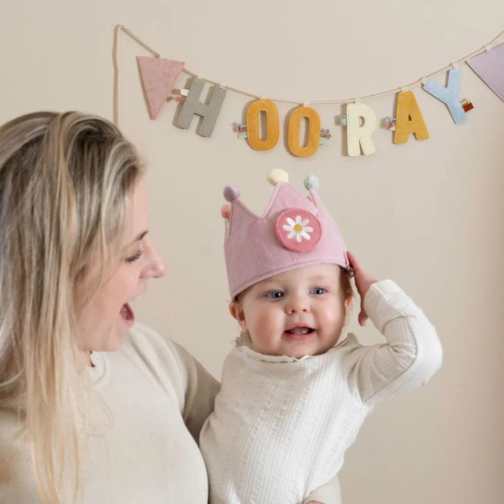 Make every birthday extra special with the Little Dutch Birthday Crown in Pink. Made from soft fabric and finished in delicate tones, this adjustable crown comes with interchangeable numbers (1–5) so it can be reused year after year. Whether it’s for a party, photoshoot, or keepsake box, this crown adds a magical finishing touch to your little one’s big day.