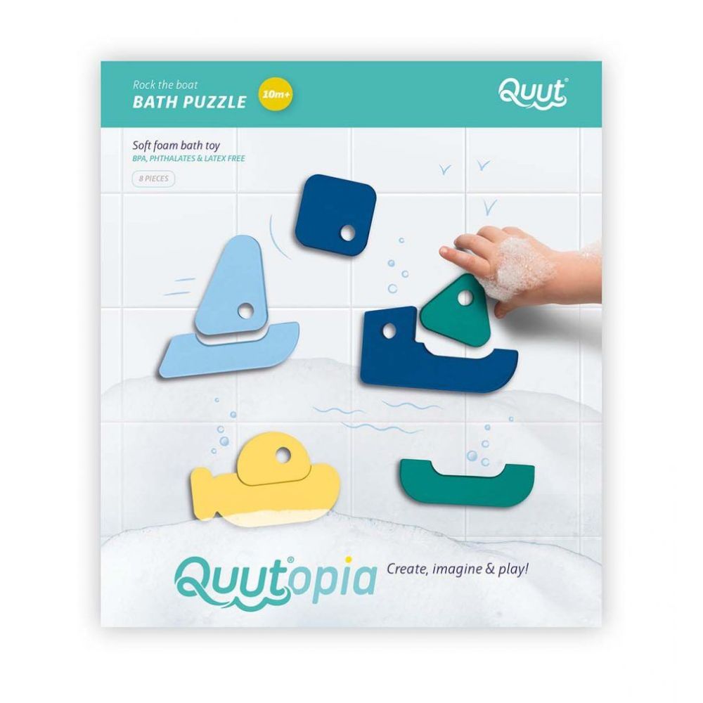 Get ready for a fantastic adventure! Dive into bath time fun with the adorable little boats from Quut. Match the correct parts together to reveal a submarine, a sailing boat, a catamaran, and a cargo boat. Or, let their creativity run wild and invent entirely new types of boats!