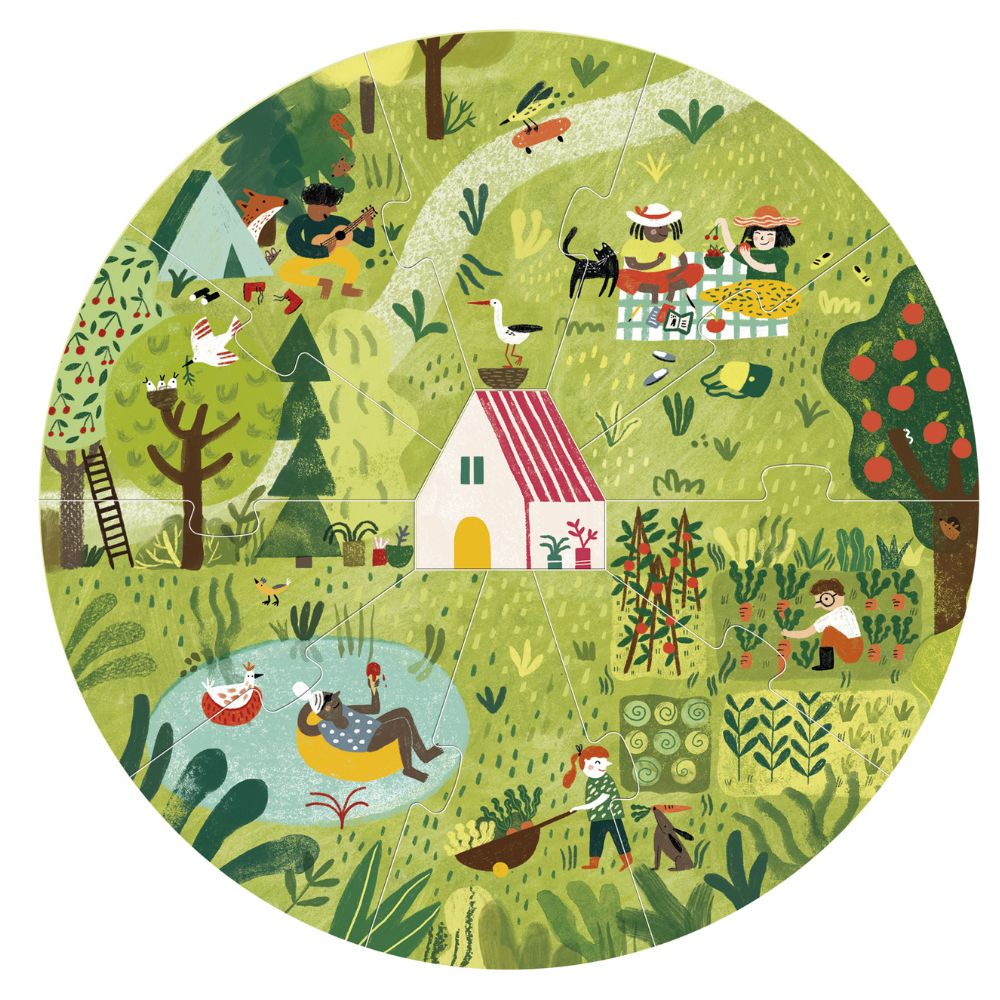 A fun and educational puzzle game that showcases the four seasons and how nature changes throughout the year. The game consists of four puzzles, each with 10 pieces, which are assembled one on top of the other to create a layered picture. The picture depicts a little wooden cabin surrounded by the different elements of nature in each season.