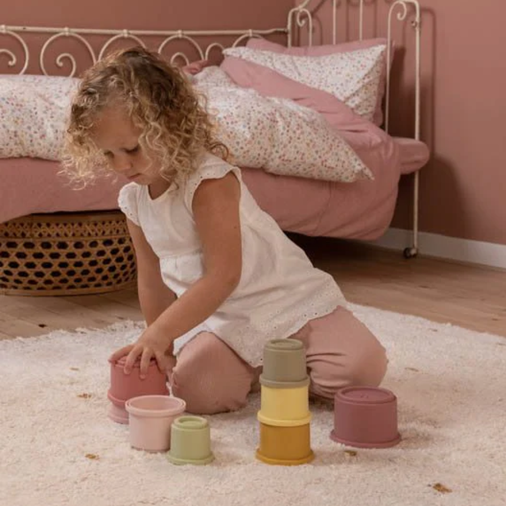 How tall can your tower reach? This delightful set of 8 pink and yellow stacking cups encourages little ones to build, balance and discover, one cup at a time. Featuring numbers on the top, it also helps support early number recognition while developing fine motor skills and providing hours of happy play.